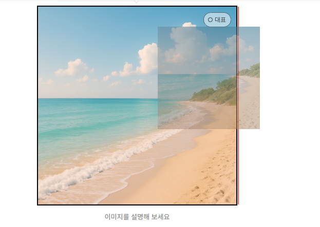 2. 사진2장을 갖다 붙일때 이렇게 빨간붙임선이 생길때 마우스를 띠면 자석처럼 철석 붙습니다.